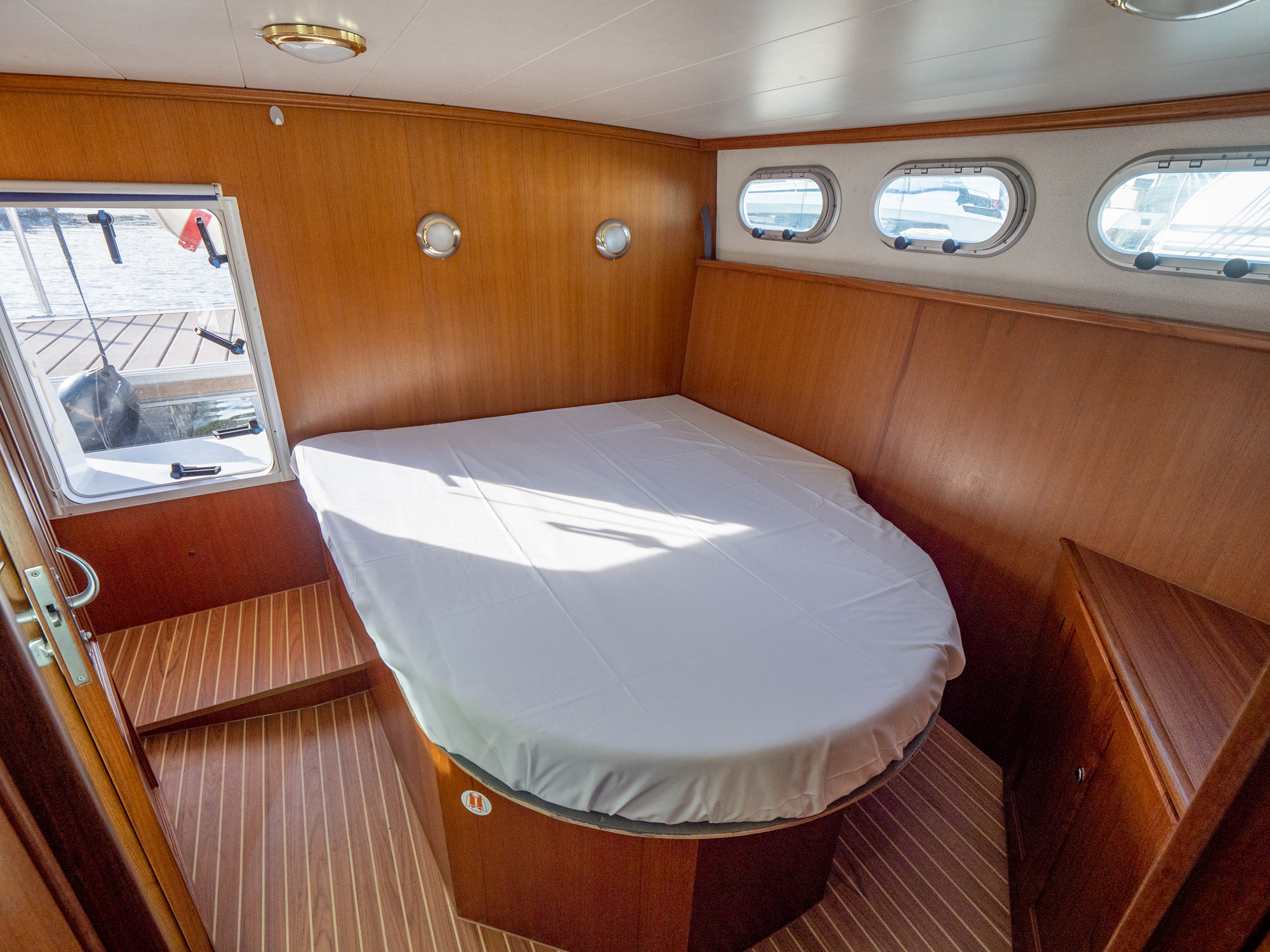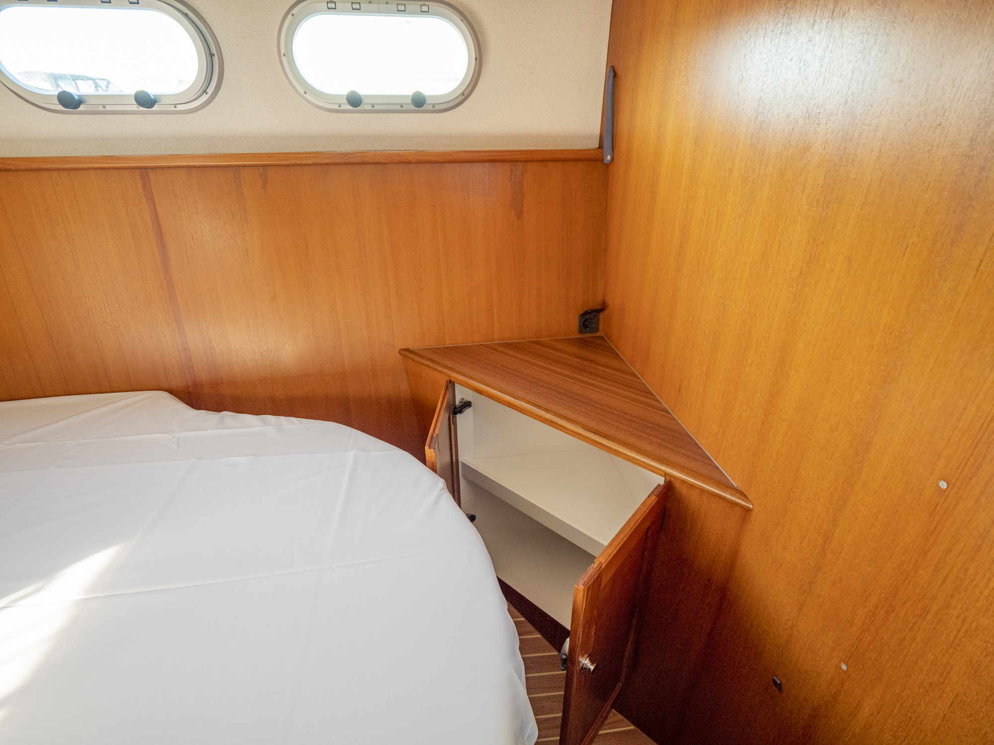An Bord von Hannah finden Sie zwei einladende Doppelbettkabinen, jede mit einer eigenen Nasszelle ausgestattet, die Privatsphäre und Bequemlichkeit garantieren. Die komplett ausgestattete Pantry lädt zum gemeinsamen Kochen und Verweilen ein, während das französische Bett in der Achterkabine mit einem großen Fenster zum Sternegucken verführt.