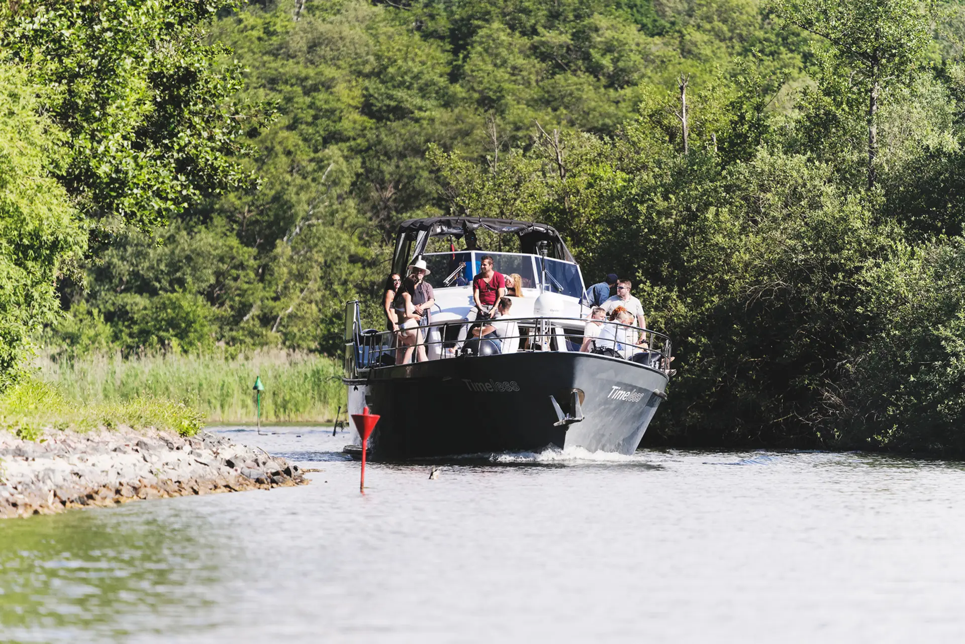 Mit einem Bus geht es direkt zum Bootsverleih. Hier stehen 10 führerscheinfreie Boote für Sie bereit und nach der Einweisung und Einteilung in 5 Team’s geht es los.