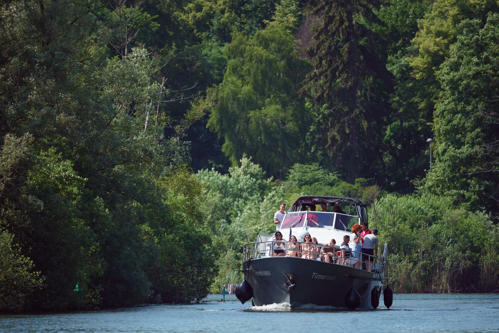 Entspannen Sie sich beim Baden in klarem Wasser und genießen Sie die malerische Umgebung entlang der Kanäle.
