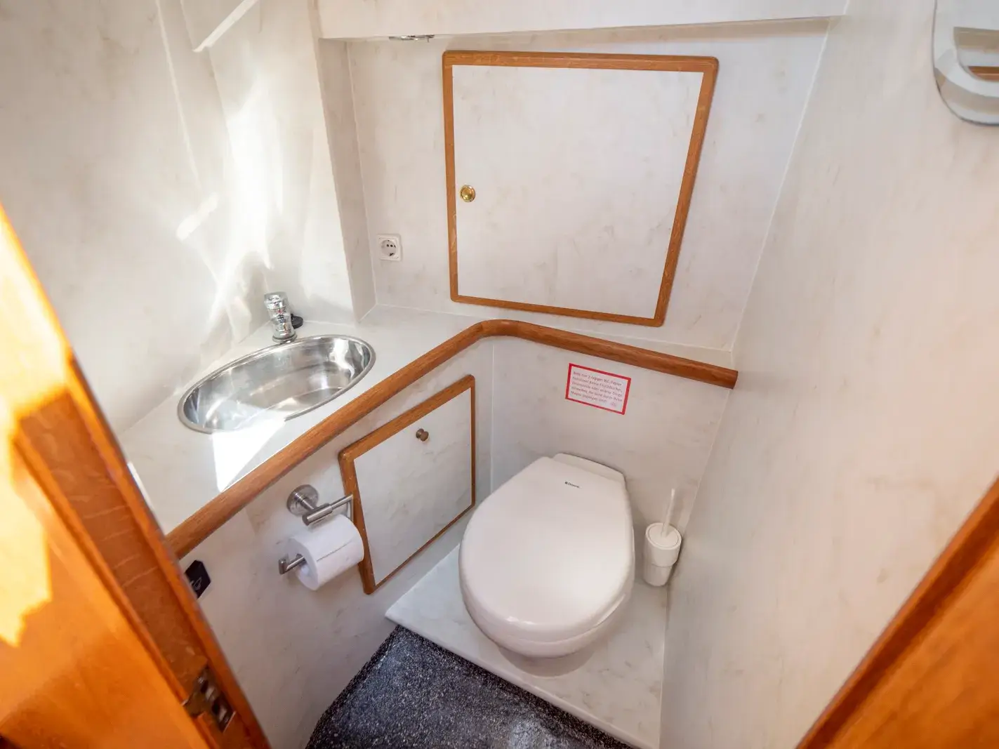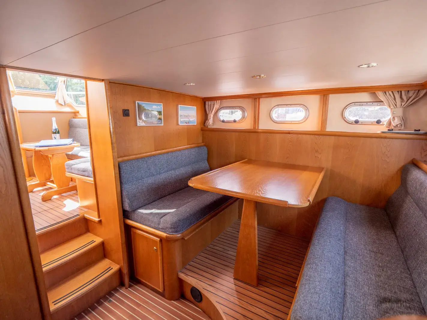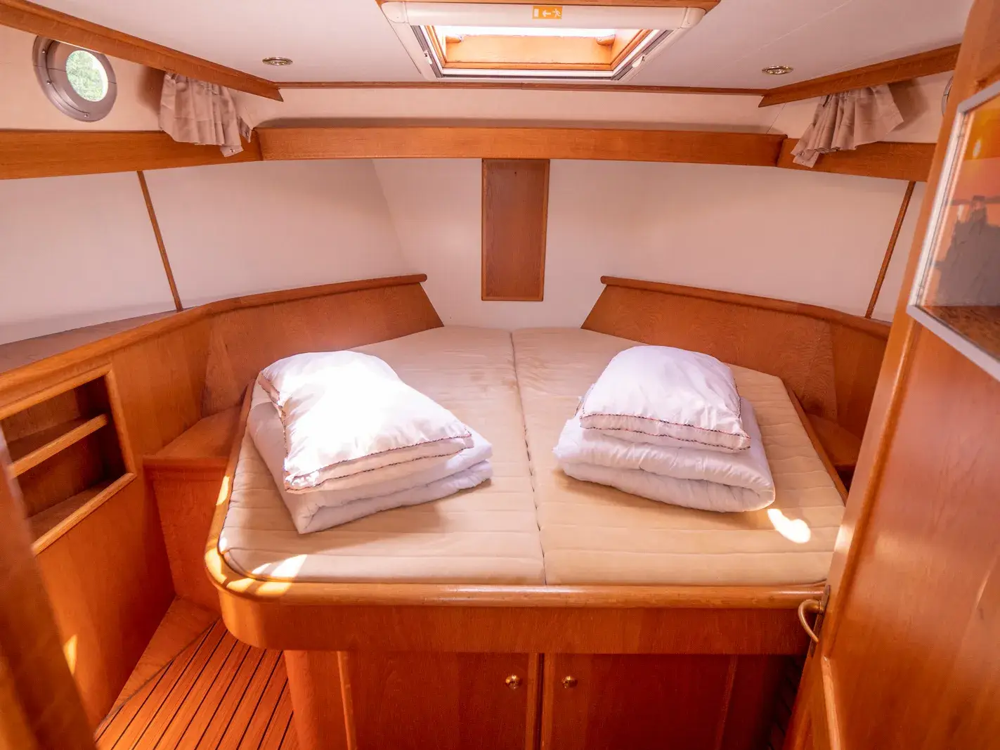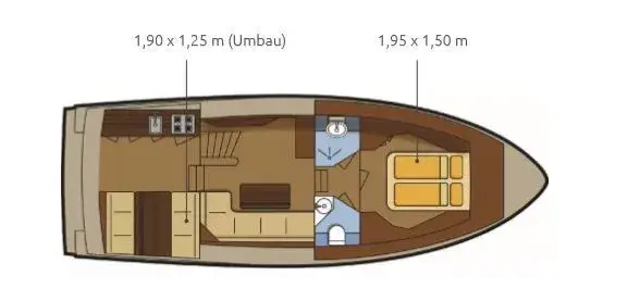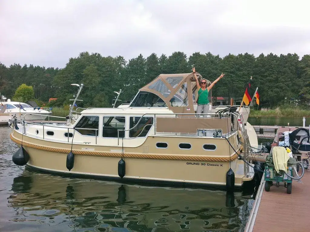 Die Gruno 30 Classic besticht durch ihr seltenes und klassisches Design sowie eine Grundrissvariante, die viel Platz für zwei Personen bietet. Diese Yacht wurde von der Gruno Werft in Holland erstmals mit diesem Grundriss für uns gebaut und ist ideal für ein Ehepaar. Sie bietet zwei feste Schlafplätze in der Vorderkoje. Das exklusive Zwei-Farbdesign verleiht dem Schiff eine besondere Note. Der Salon und die Pantry sind sehr geräumig, mit einer Stehhöhe von 1,90 m im Salon und 1,85 m in der Dinette.