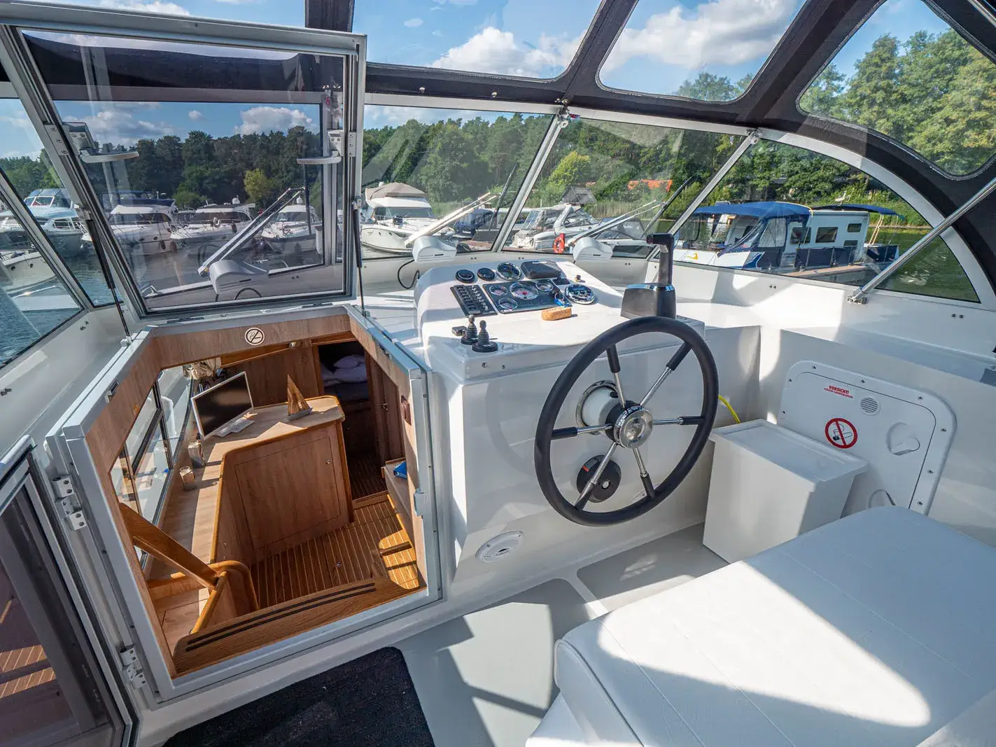 Die Gruno 37 Excellent ist Ihre ideale Begleitung für einen unvergesslichen Urlaub. Diese 11,30 Meter lange Motoryacht bietet Platz für 4 Personen in 2 Kabinen mit 4 festen Kojen, 2 Toiletten und 2 Duschen. Bug- und Heckstrahlruder erleichtern das Manövrieren erheblich. Genießen Sie die Natur auf dem überdachten Achterdeck. Ein weiterer Vorteil: Für die Gruno 37 Excellent benötigen Sie keinen Führerschein. Buchen Sie jetzt bei Charter Schulz und starten Sie Ihr Abenteuer auf dem Wasser!