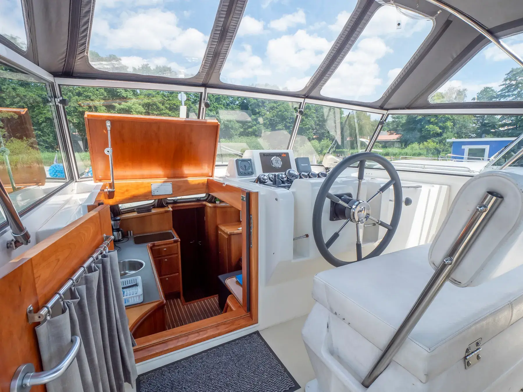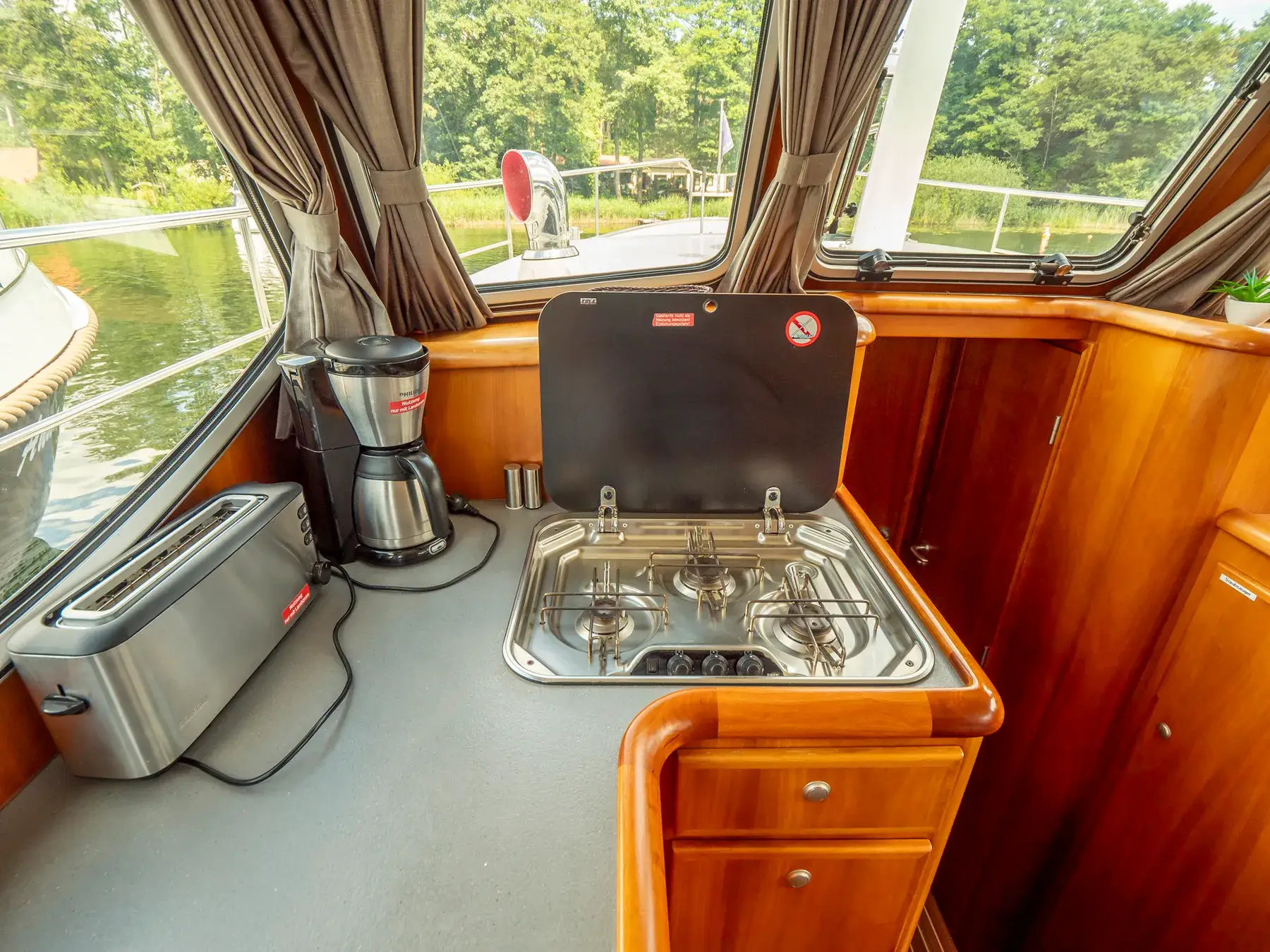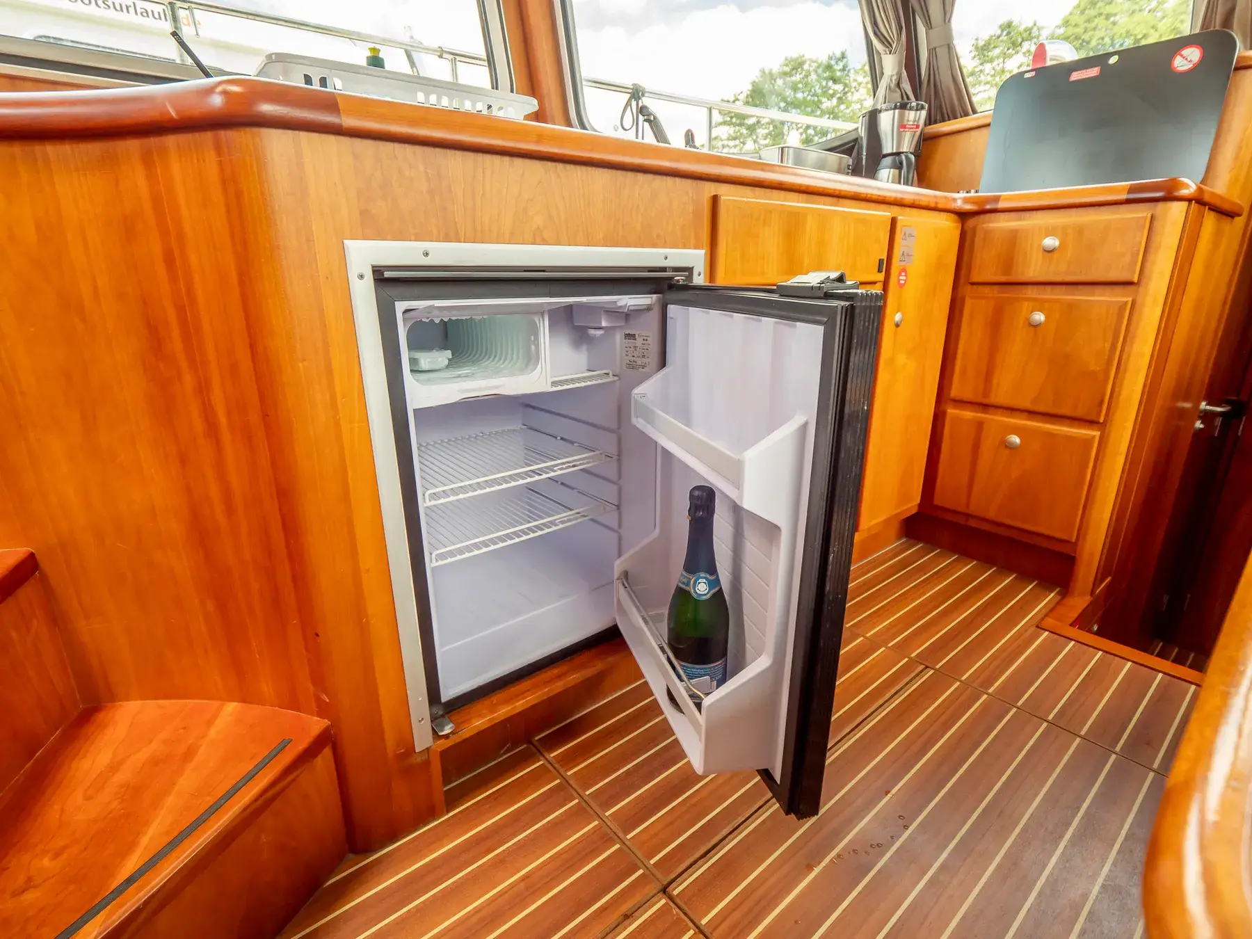 Vollständige Pantry mit mehrflammigem Kochfeld, 85 l Kühlschrank; 2 x Nasszelle mit Waschbecken, elektr. WC, 2 separate Duschen; Fernseher, DVBT-Anschluss, CD-Radio, Heizung; Echolot mit Log, Ruderstandsanzeige, komplett verschließbare Persenning; Bug- und Heckstrahlruder; MY „Caroline“ mit Mikrowelle u. Heckdusche