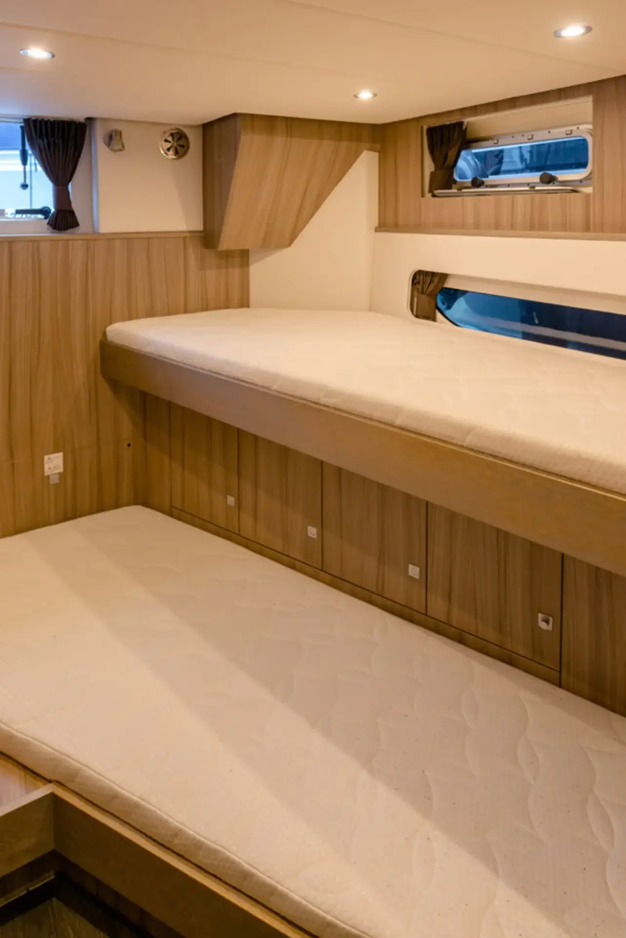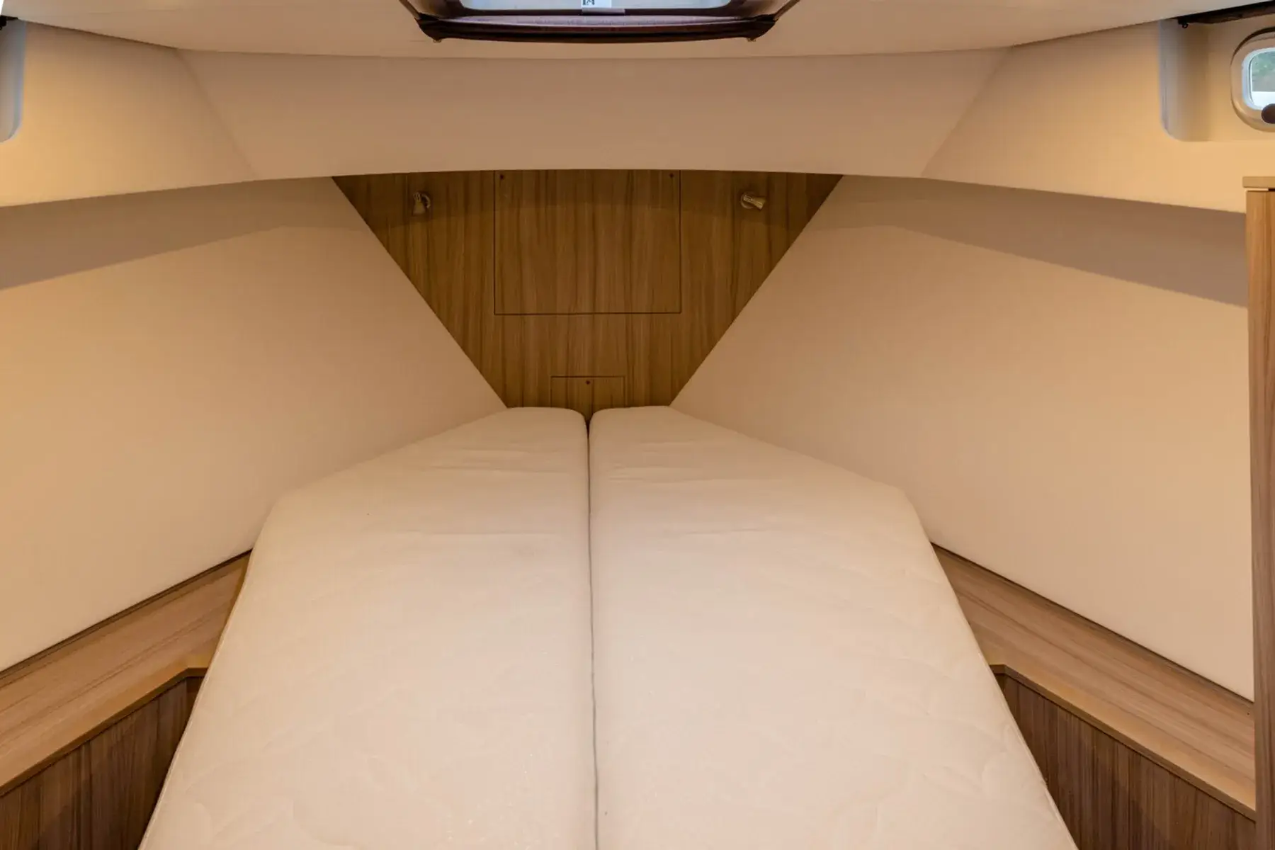 Diese Neuheit kommt ebenfalls aus der Jetten Yachtmanufaktur. Mit einem ergonomischen Außendesign und einem modernen Interieur besticht sie durch klare Linien. Die komfortable Ausstattung erfüllt nahezu alle Wünsche. Erleben Sie die Seenplatte auf dieser außergewöhnlichen Yacht. Die Wendeltreppen am Heck ermöglichen einen bequemen Zugang vom Badeplattform auf das Deck.