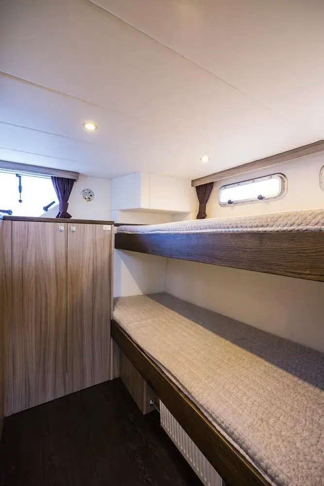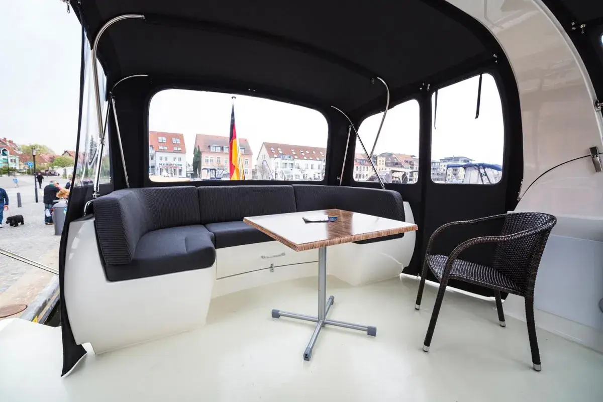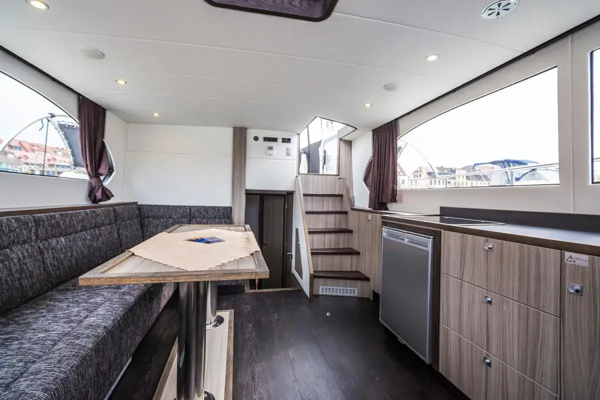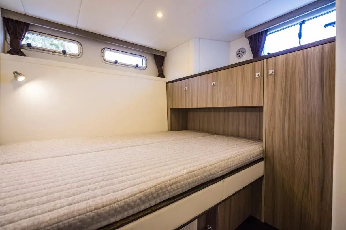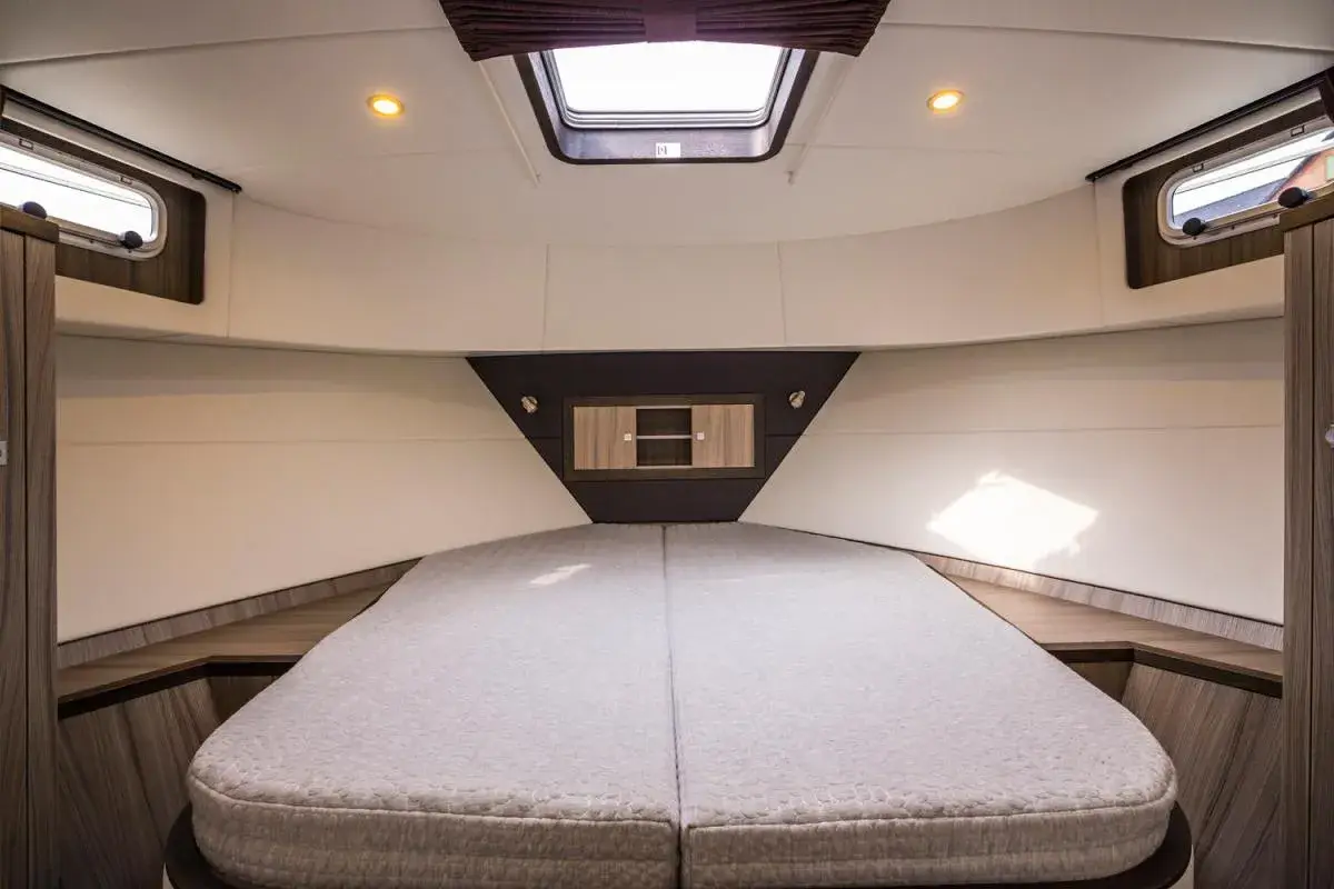 Auch diese Neuheit stammt aus der Jetten Yachtmanufaktur. Das ergonomische Außen- und moderne Interieurdesign bilden eine klare Linie. Die komfortable Ausstattung lässt kaum Wünsche offen. Genießen Sie die Seenplatte auf dieser ganz besonderen Neuheit. Dank achterlichen Wendeltreppen gelangen Sie von der Badeplattform aus bequem auf Deck.
