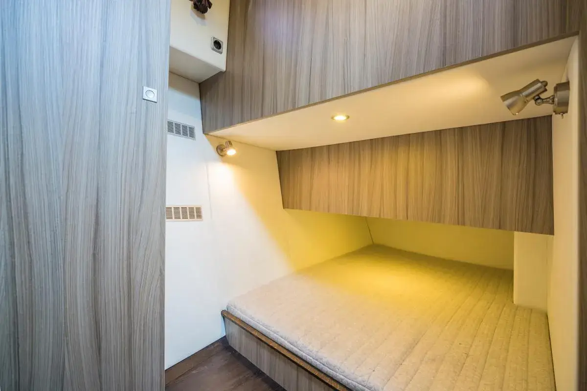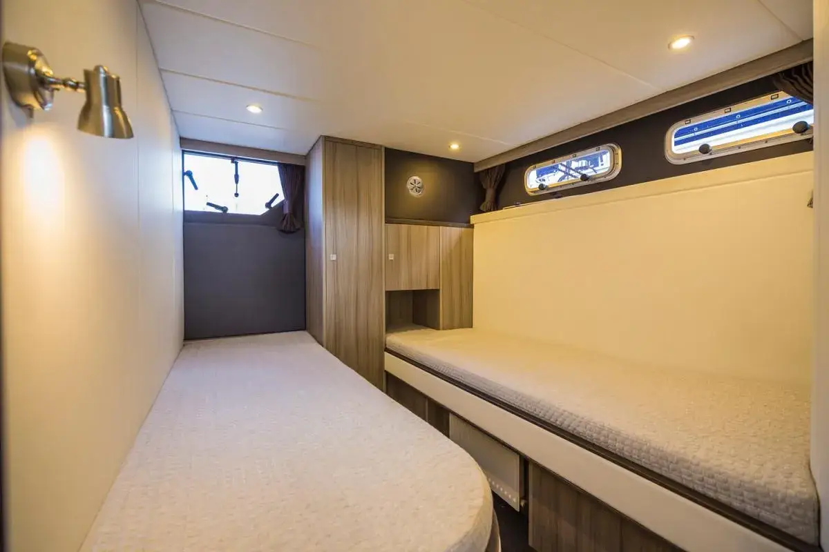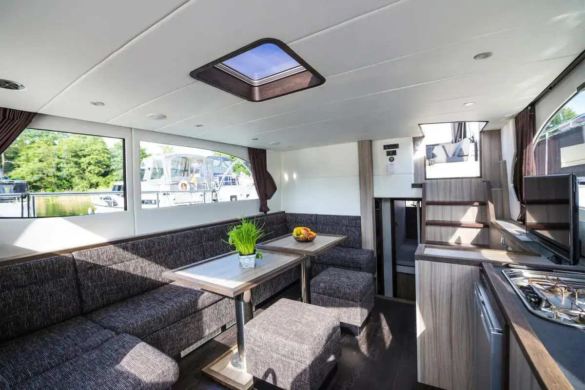 Eine weitere Neuheit für 8 Personen ist dieses geräumige Schiff. Außen- und Innenraumdesign sowie die gehobene Ausstattung versprechen einen komfortablen Aufenthalt. Auch hier gelangen Sie bequem auf das Achterdeck über eine komfortable Wendeltreppe.