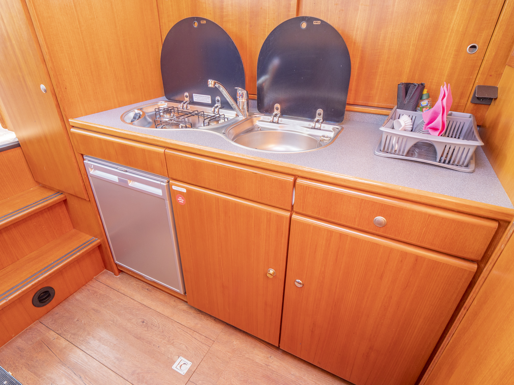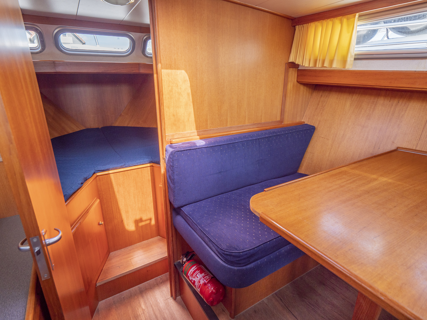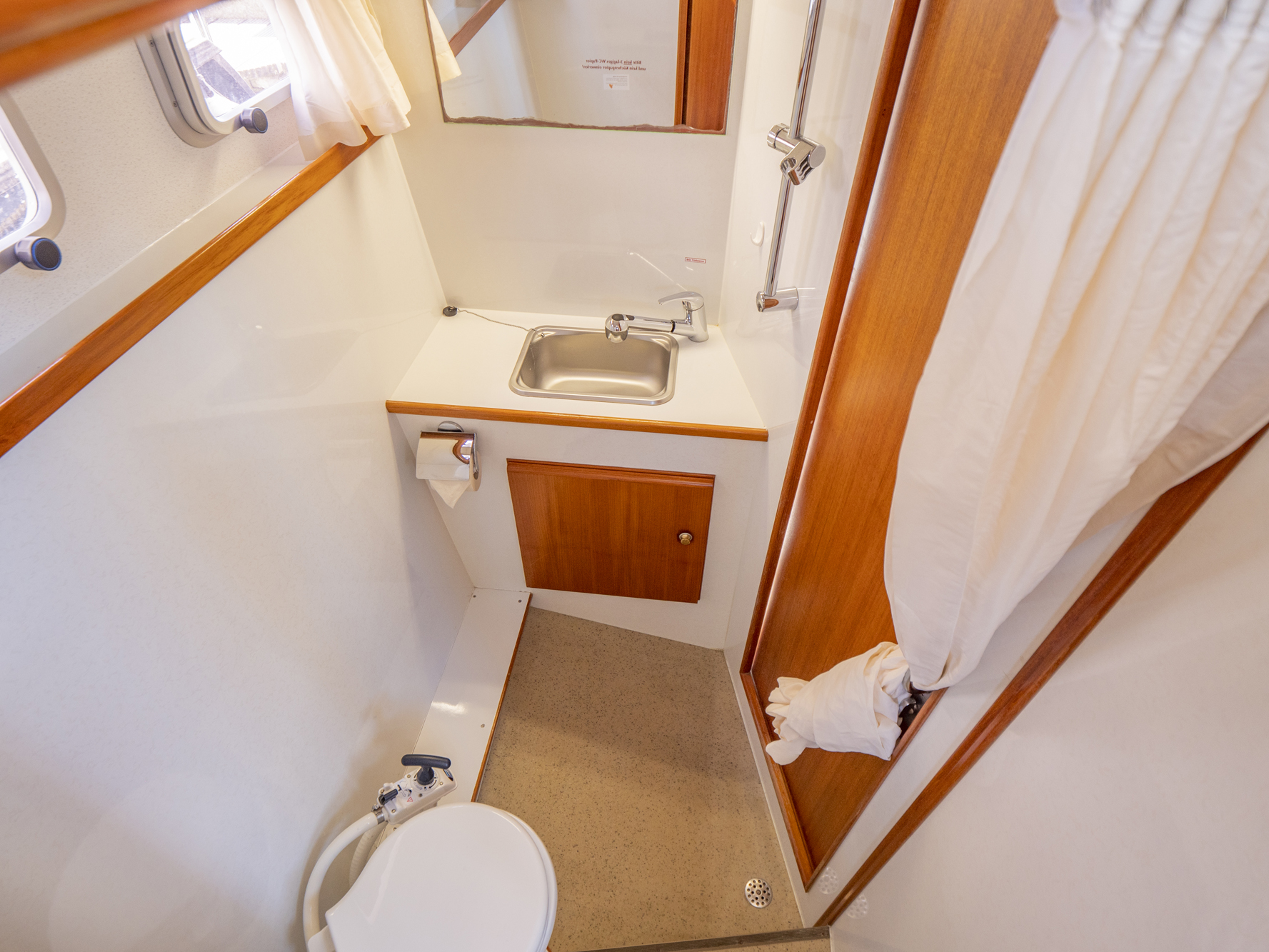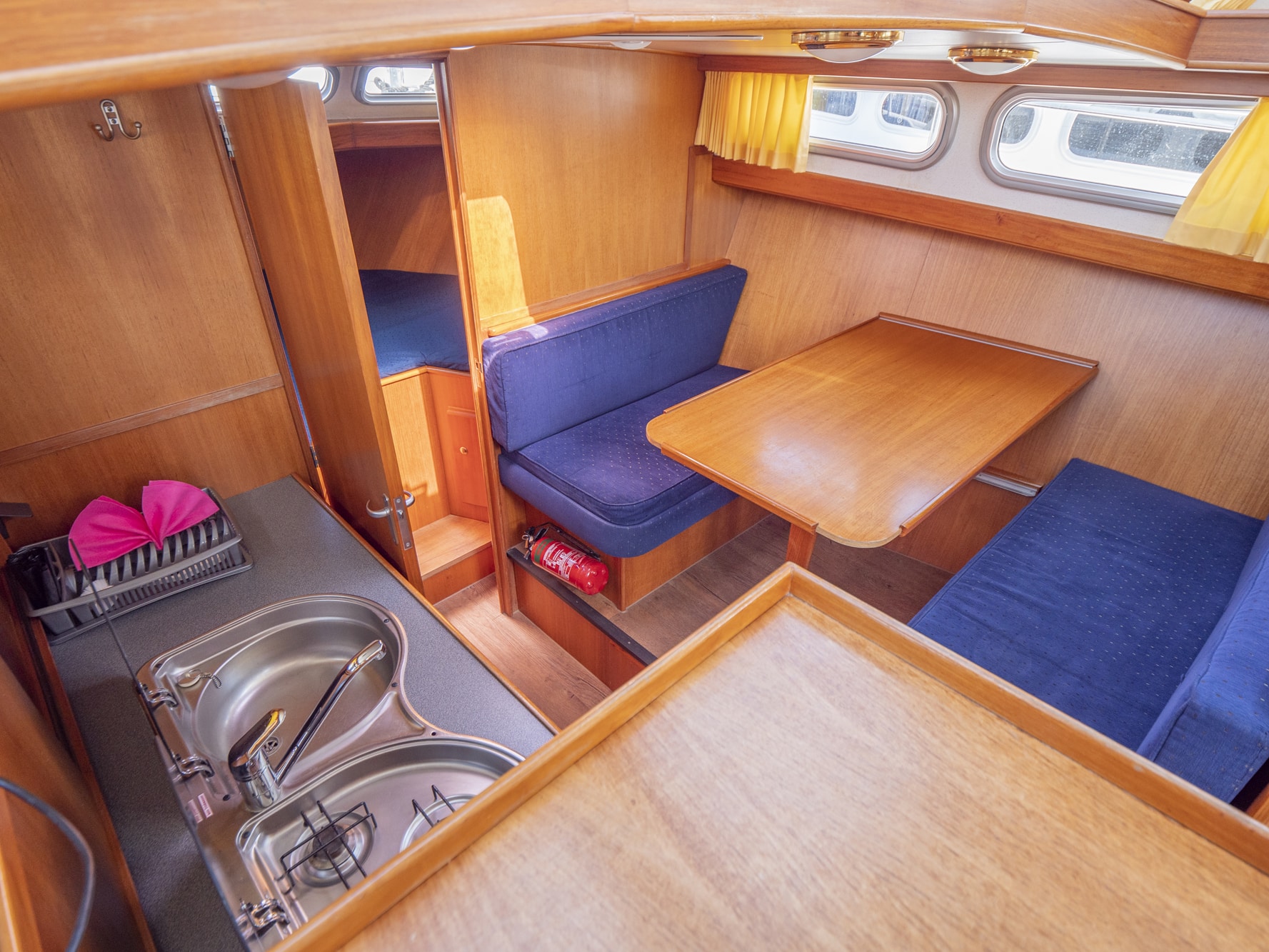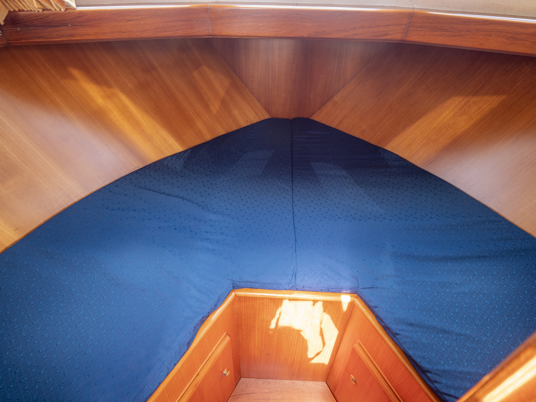 Dieses Boot bietet Platz für 6 Personen. Neben 4 festen Schlafplätzen können 2 Plätze in der Dinette umgebaut werden. Das Highlight ist das von beiden Seiten begehbare französische Bett in der Achterkabine, sowie der zentral vom Salon zugängliche Sanitärbereich.