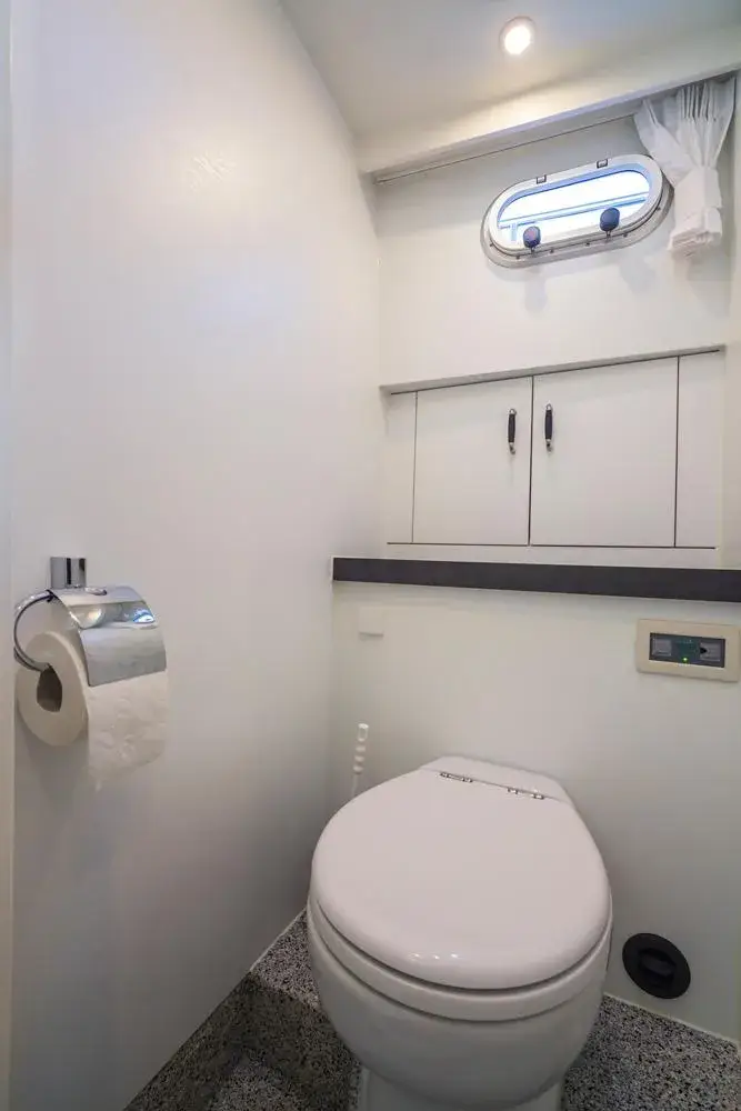 Der Sanitärbereich verfügt über eine Duschzelle und eine WC-Kabine mit elektrischer Planus-Toilette.
