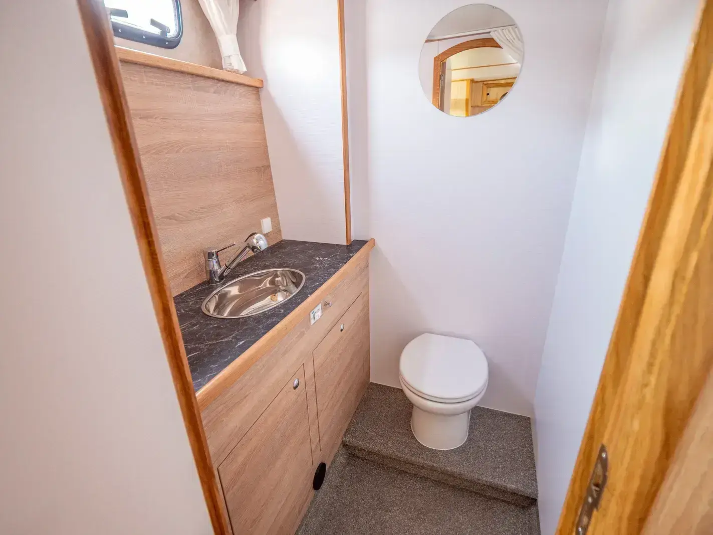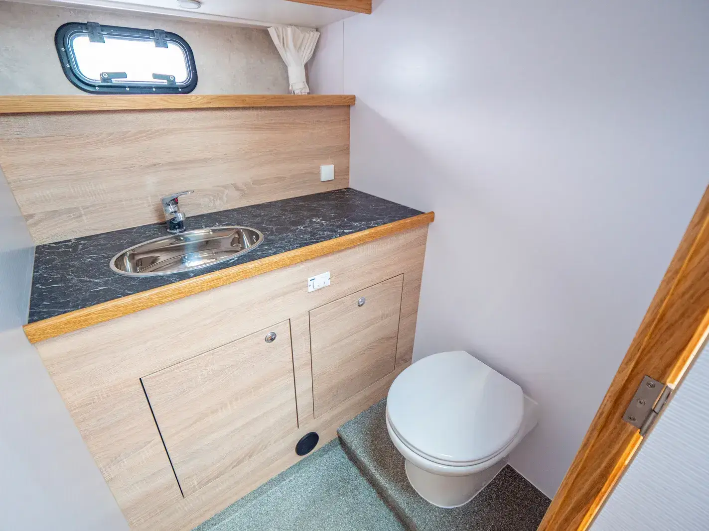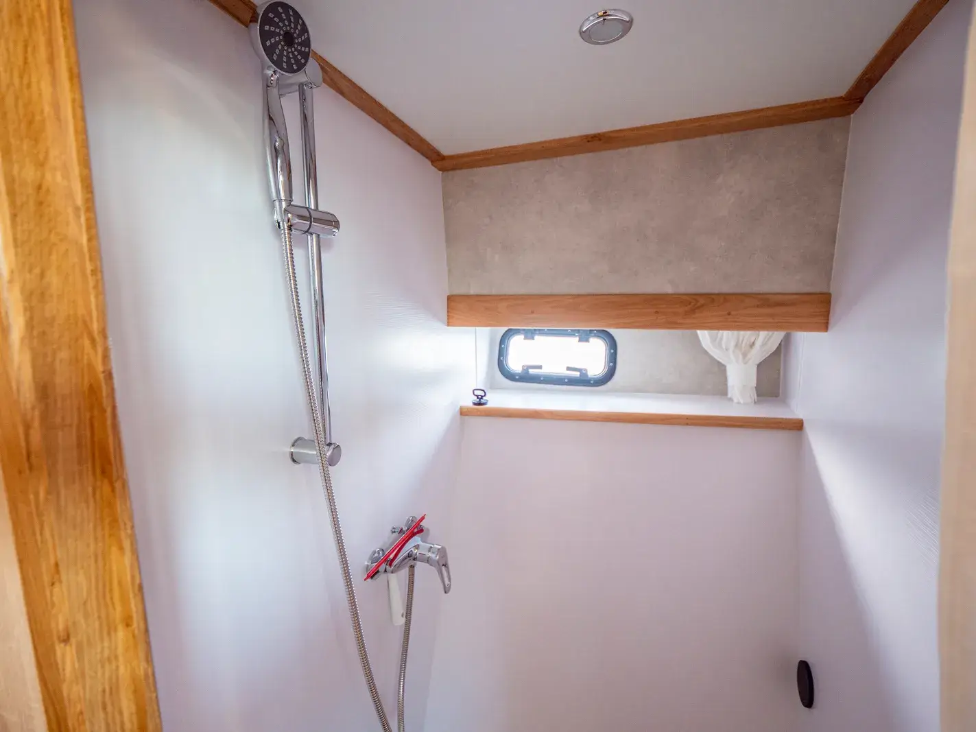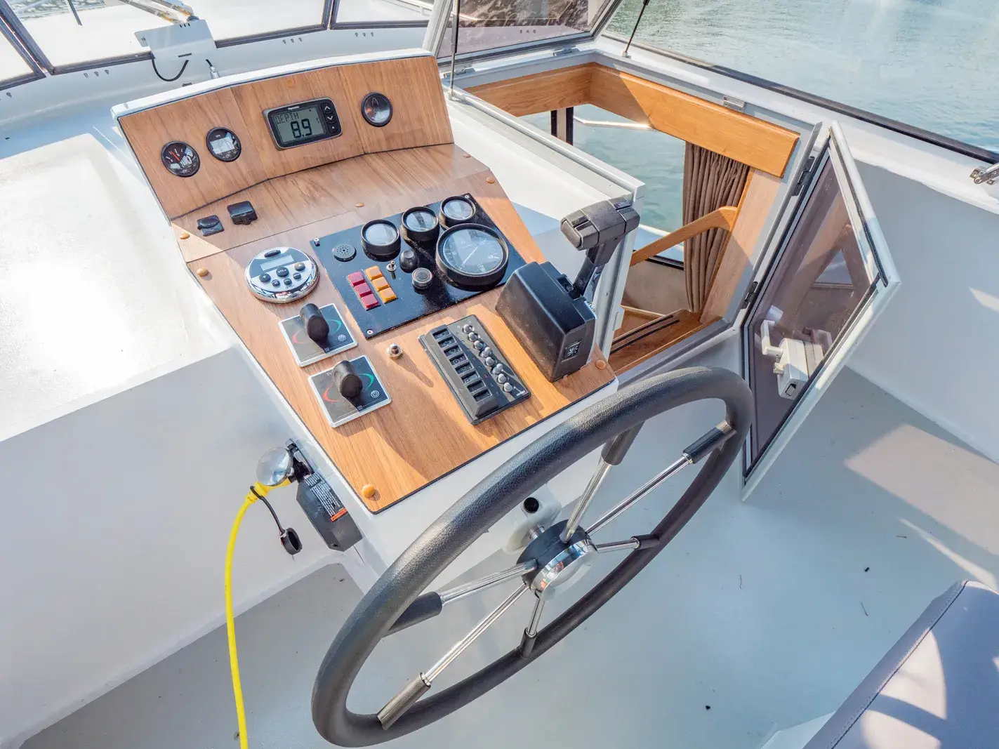 Die Yacht ist mit einer vollständigen Pantry ausgestattet, die ein mehrflammiges Kochfeld und einen 110-l-Kühlschrank umfasst. Es gibt eine Nasszelle mit Waschbecken, manuellem WC und Dusche sowie eine weitere Nasszelle mit Waschbecken und manuellem WC und eine separate Dusche. Zur Ausstattung gehören ein Fernseher, DVBT-Anschluss, CD-Radio, Heizung, separates Radio am Steuerstand, Echolot mit Log, eine komplett verschließbare Persenning sowie Bug- und Heckstrahlruder.